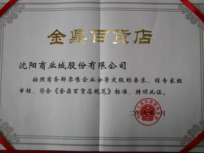 2009年被國家商務部評為“金鼎級百貨店”